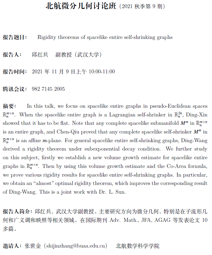 上一篇:【学术报告及分析与偏微分方程讨论班(2021秋第6讲)】Several Adams inequalities and the existence and nonexistence of the extremals with L^2 perturbation terms