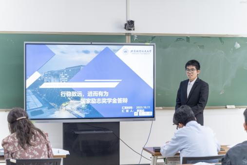 17位国家奖学金申请人、14位国家励志奖学金申请人依次进行自我陈述汇报,他们从成绩奖项、科研经历、员工工作、社会实践等方面介绍了自己的综合情况。各位评委从不同角度对候选人提问,从而对候选人进行更加深入考察。
