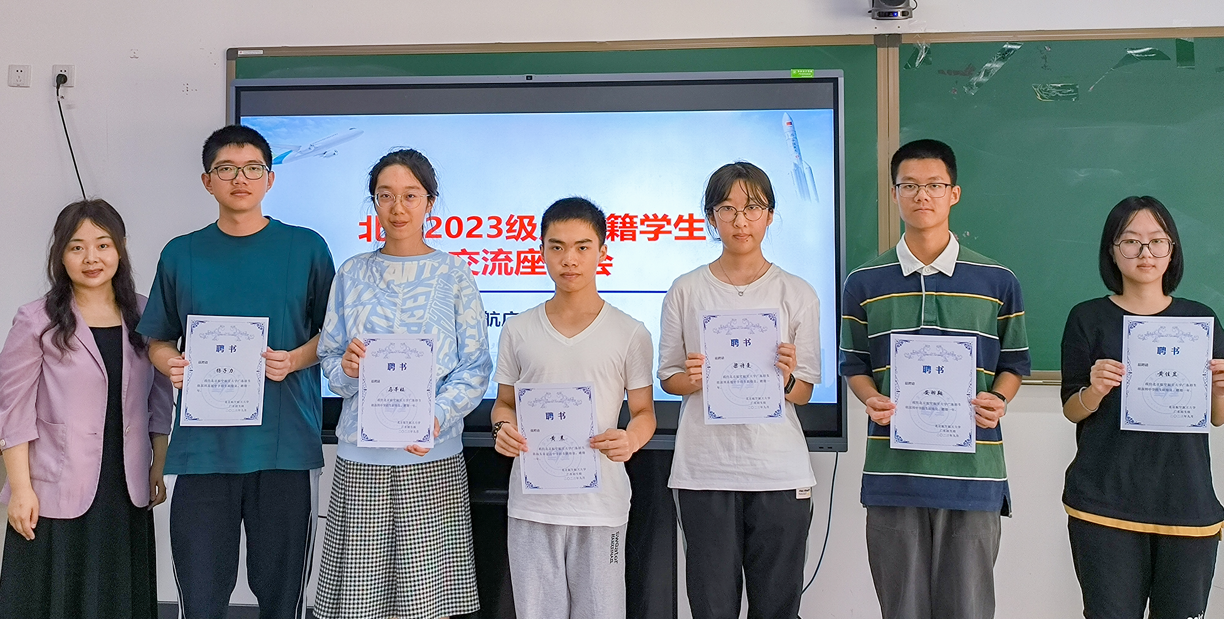 会上,魏茜与孔祥明为报名参加北航广东招生组宣传联络员的44位新生颁发了聘书,动员同学们积极参与到后续的招生工作中,进一步聚拢高中资源、活化朋辈网络,以“学长学姐式”的解答帮助更多优秀的广东学子找准方向、圆梦北航。