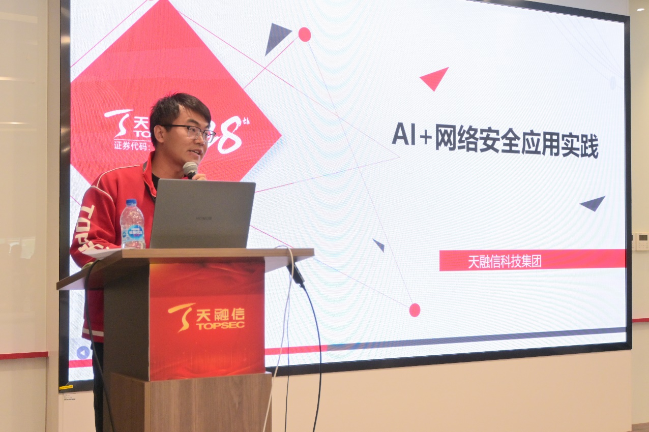 天融信科技集团产品线总监潘季明为带来了关于AI+网络安全应用实践的分享。他介绍了研究团队的研发历程,并详细阐述了AI在网络安全领域的应用实践,包括样本分析、流量检测及文本情报提取等方面。同时,他也阐述了AI应用中的风险挑战,并分享了未来构建大模型安全框架和防火墙的计划。