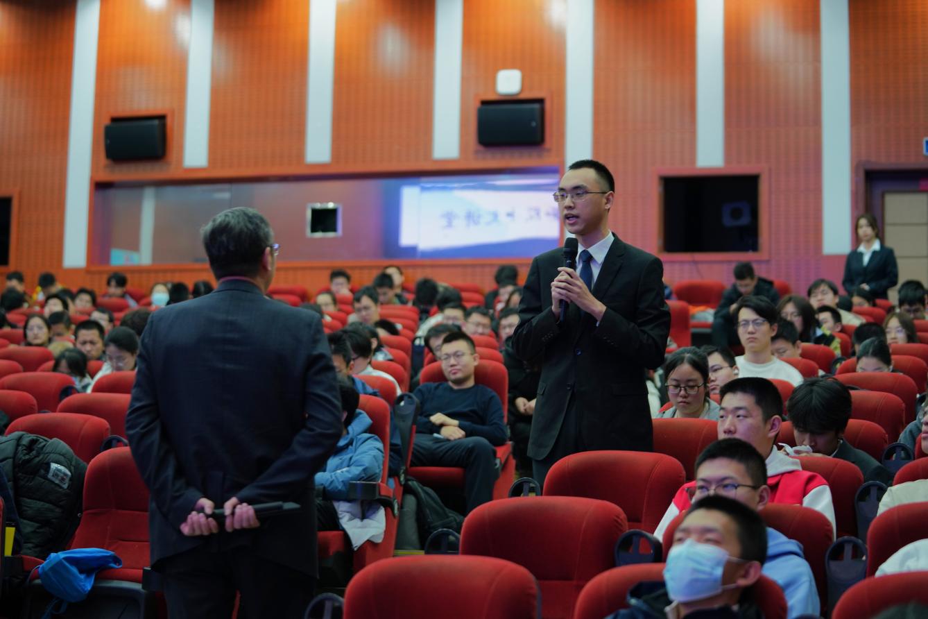 袁亚湘院士主讲“数学与希望”讲座,以深入浅出的语言、充满趣味的讲解,通过数学为古今未来带来的希望,带领现场师生领略数学的独特魅力。在分享过程中,袁院士特别提到,做研究最关键的是兴趣,好奇和兴趣会促使大家持之以恒。这番话语让现场师生深刻体会到,数学不仅是解答疑惑、指导实践、指引方向的重要工具,更是一片需要以热爱去耕耘的田野。答疑环节,同学们踊跃提问、积极互动,袁院士逐一细致解答,现场思维碰撞、氛围热烈。