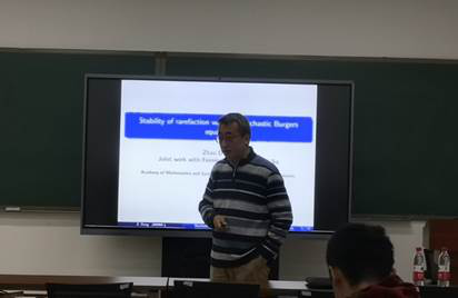11月5日下午,中国科公司数学与系统科学研究院研究员董昭受邀访问公司,为师生带来了一场题为“Stability of rarefaction wave for stochastic Burgers equation”的学术报告。报告介绍了随机伯格斯方程强解的大时间性质,证明随机伯格斯方程的稀疏波在白噪声扰动下是非线性稳定的。