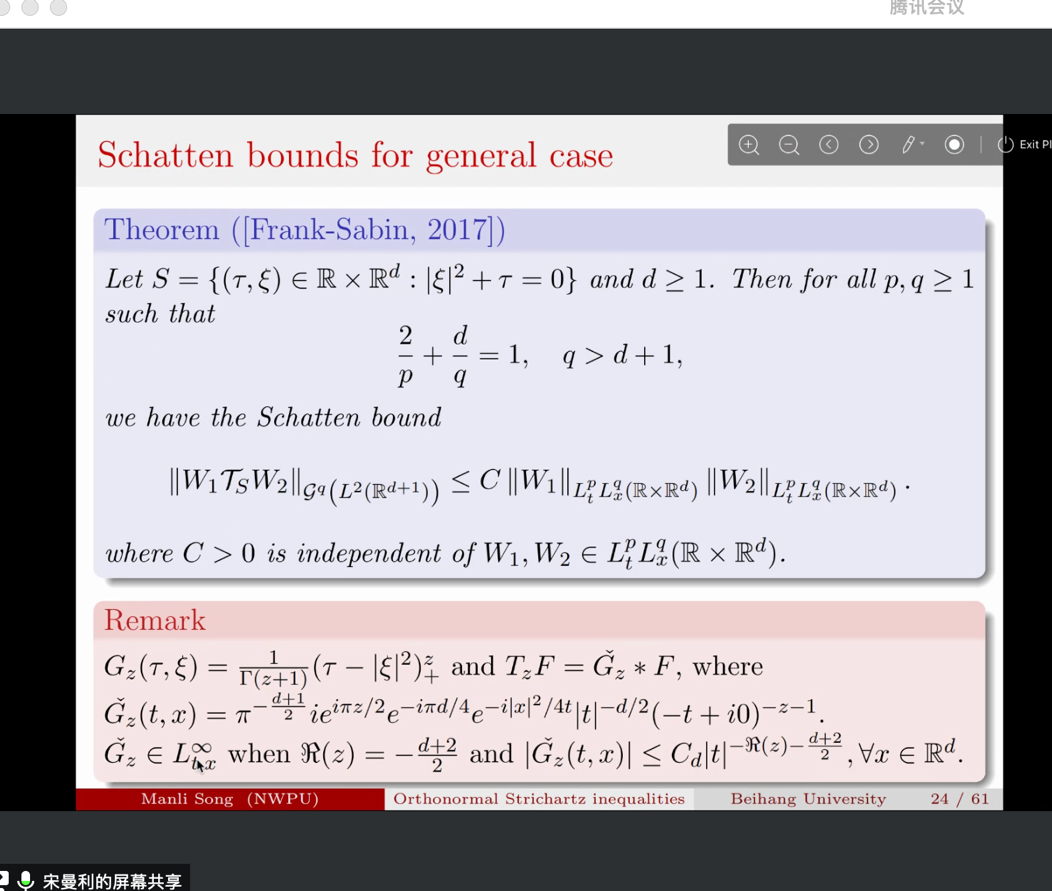 2022年10月28日,西北工业大学宋曼利教授应邀为WilliamHill中文官网师生做了题为 “Orthonormal Strichartz inequalities for the $(k, a)$-generalized Laguerre operator and Dunkl operator”的学术报告,报告由张安老师主持。