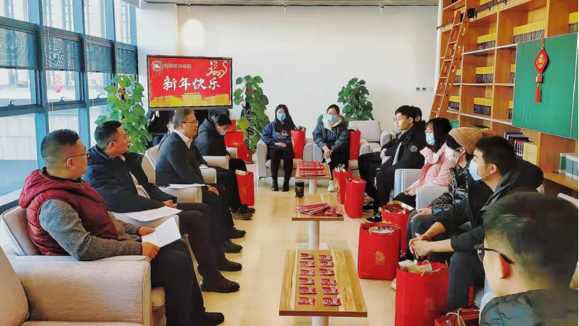 公司领导和教师代表向留校员工致以节日问候和新春祝福,祝福同学们在新的一年里身体健康,学习和科研顺利,并嘱咐同学们要注意防疫、消防和交通安全,遵守公司疫情防控和宿舍管理规定,保持良好卫生习惯,掌握好学习节奏,争取度过一个安全、充实的虎年春节假期。
