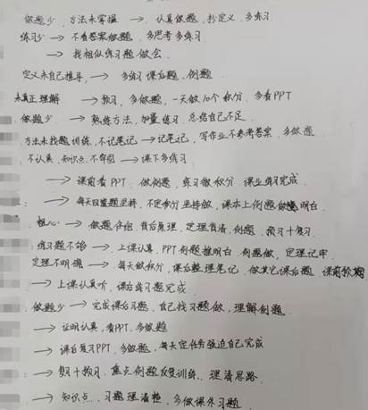 新式座谈与每位同学都交谈了近20分钟,两场座谈每场都持续了近4个小时,共与20多名班级中选出的同学代表进行了深度交流。交流中每一位员工都针对前半学期中的学习习惯、方法进行了分析,并制定了适合自己未来一个月学习数学分析的详细学习计划,增强了期末取得理想成绩的信心。