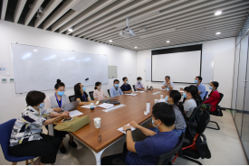 经理韩德仁首先传达了公司暑期工作会精神,并从人才人事、团队建设、科研工作、人才培养及文化建设等方面汇报了公司上半年的工作情况,重点分析了当前高等教育面临的新挑战和国家的新要求。他指出,国家对基础研究及数学学科愈加重视,国家评价指标体系发生变化,公司面临环境、学科、人才多方面的发展困境,提出了公司“夯实基础 特色应用 科教融合 全面发展”的发展理念,以及建设三支队伍、打造三个中心、推进三项改革的工作举措。