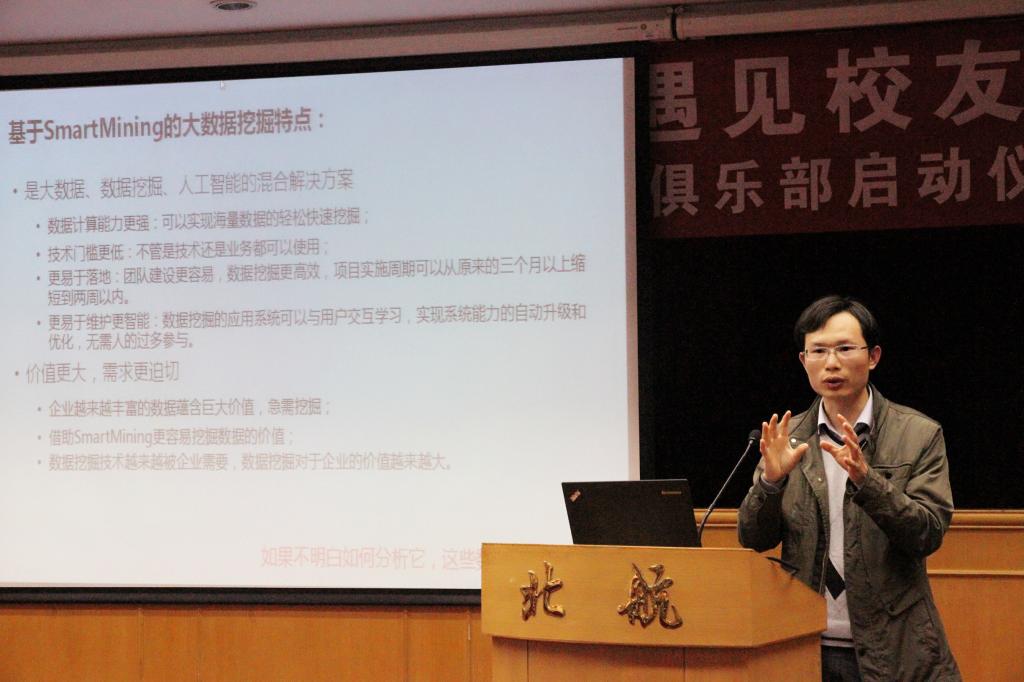 接下来,徐晶员工也分享了自己的心得体会。他对公司表示了深深的怀念,追忆20年前在校的美好时光。在谈到员工俱乐部时,徐晶表示,当今社会在改变我们的生活方式的同时,也给予了我们发展自我的契机。数据挖掘之于老员工,可以成为分析问题的一种解决方式,可以是理解大数据时代的途径,可以成为自己选择的奋斗方向。他希望,能够有更多的同学加入到俱乐部中,体味数据挖掘中的趣味与奥秘。