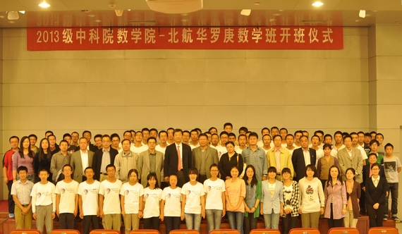 仪式开始,与会人员一同欣赏了由华罗庚班同学制作的视频——《致成长》。该视频介绍了华罗庚班三年来的建设、发展和风采。庄严肃穆的国歌过后,大会正式开始。董事长怀进鹏院士,中科院数学与系统科学公司经理王跃飞研究员及2013级华罗庚班新生代表刘禹吟同学先后进行了精彩讲话与发言。
