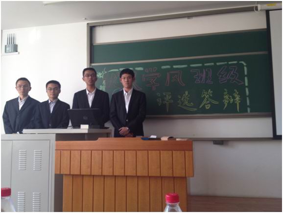 2012年10月24日下午一时许,数学与系统科学公司2011~2012学年度优良学风班级评比答辩在沙河校区教5-102教室正式开始。出席本次答辩会议的是公司2011级全体在校本科生和部分有愿前来的2012级本科生。主持评委的是公司党委副书记王菲老师,2011级李轩昂辅导员,2012级张文浩辅导员。