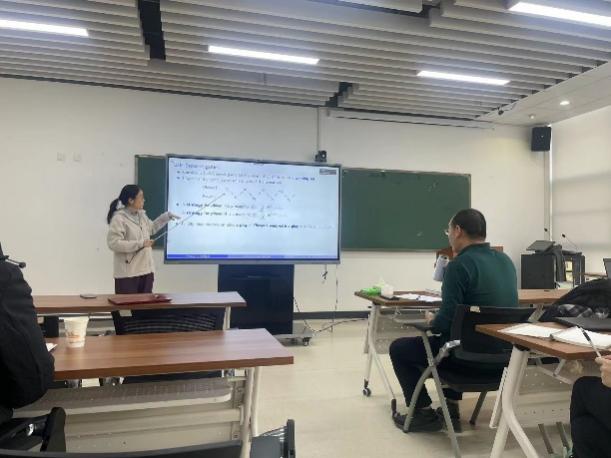 李文娟博士以寻找一类博弈的必胜策略为例,引出了自动机识别的语言与“决定集”的相关问题,并深入浅出地介绍了她在这一领域结合反推数学所做的一系列工作,最后提出了一些开放性的问题与未来可能完成的工作。现场的师生积极参与,与报告人展开了热烈地交流讨论。