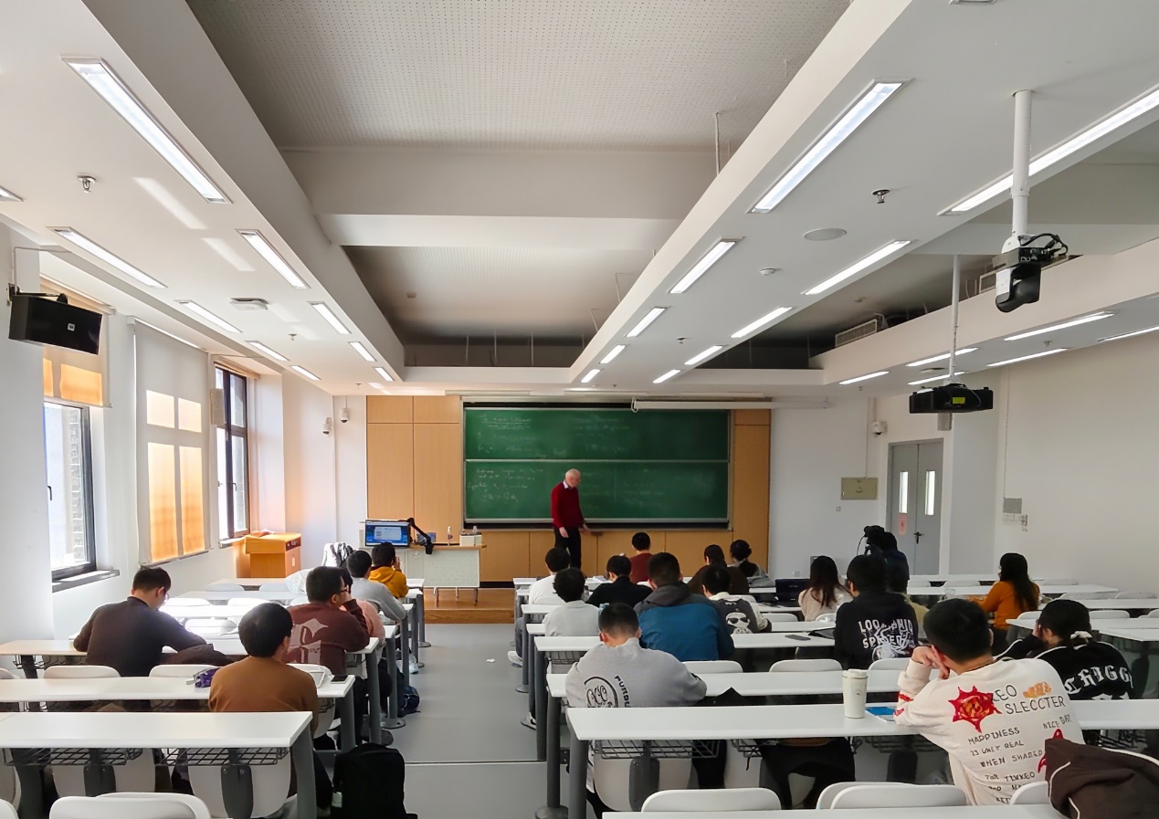 3月19日,讲习团第一课于沙河校区J4-301教室开讲。课程由巴黎萨克雷大学资深特级教师Jacques Peyrière教授主讲,经过前期选拔,来自华罗庚数学拔尖计划、数学强基、大班多位员工听课,课程还吸引了北京多所高校师生旁听。课程中,Jacques Peyrière 教授运用大量生动鲜活的实践案例,以深入浅出的方式,将几何测度论的基本概念和发展脉络徐徐展开,极大激发了员工们的好奇心与求知欲。授课结束后,Peyrière 教授还热情地邀请了部分员工共进午餐,师生交流进一步延伸。