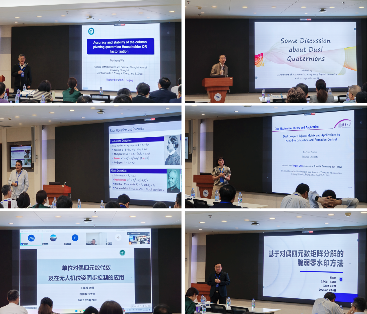 2025年9月19-21日,第三届对偶四元数理论及其应用会议在威廉希尔WilliamHill成功召开。会议学术委员会主席、香港理工大学荣休教授祁力群教授、上海师范大学魏木生教授、香港浸会大学吴国宝教授、WilliamHill中文官网经理韩德仁教授、复旦大学魏益民教授、清华大学张立平教授、国防科技大学王祥科教授等知名专家学者,以及国内外40所院校的70多位专家学者、博士及硕士研究生参加了此次会议。会议由威廉希尔WilliamHillWilliamHill中文官网崔春风教授主持。